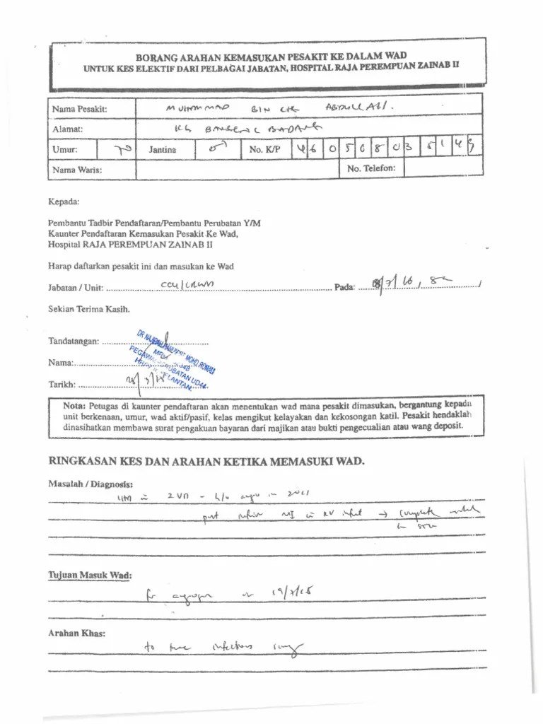 Of surat pengesahan masuk wad into english. Kena ambil surat ni daripada doktor dalam wad baru boleh buat swab test. Kembara jr arahan hospital kuala lumpur hkl . 1.1, surat arahan masuk wad hospital yang .